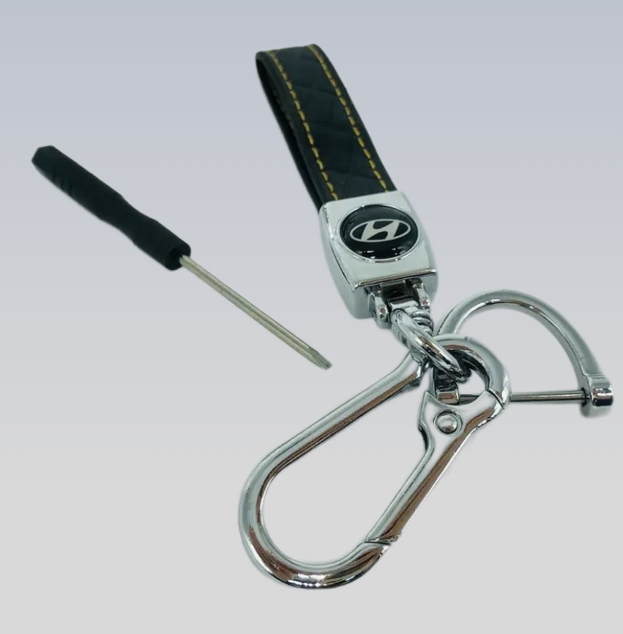 Брелок для ключей автомобиля Hyundai черный с желтой прострочкой (Хёндэ) — купить в интернет-магазине «Проф Косметика»