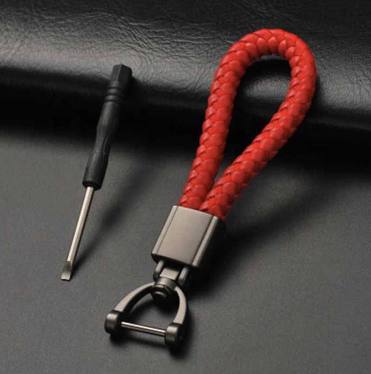 Ремешок выполнен из экокожи. Крепление изготовлено из высококачественного цинкового сплава и состоит из двух карабинов, вращающихся на 360 градусов. Карабины надёжно закрываются, один из которых имеет резьбовое соединение и к нему в комплекте идет маленькая отвёртка.