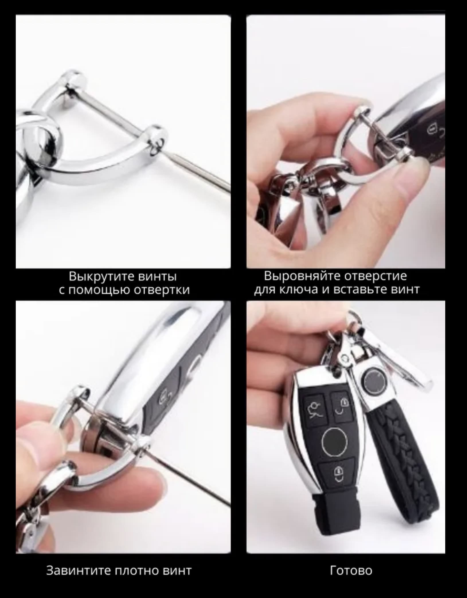 Ремешок выполнен из экокожи. Крепление изготовлено из высококачественного цинкового сплава и состоит из двух карабинов, вращающихся на 360 градусов. Карабины надёжно закрываются, один из которых имеет резьбовое соединение и к нему в комплекте идет маленькая отвёртка.