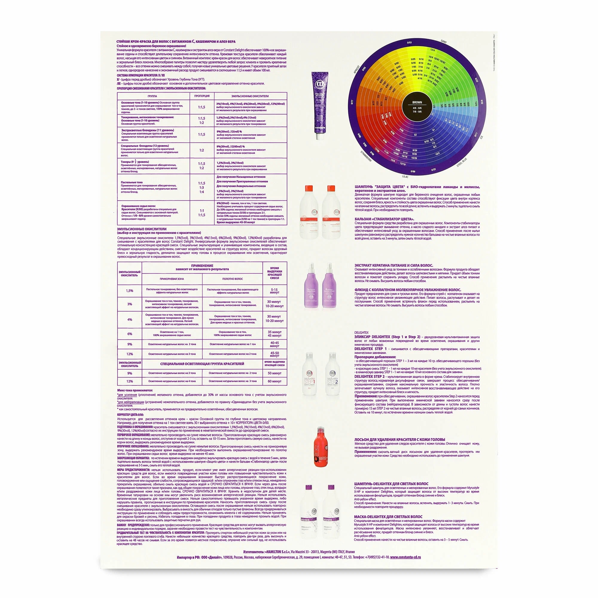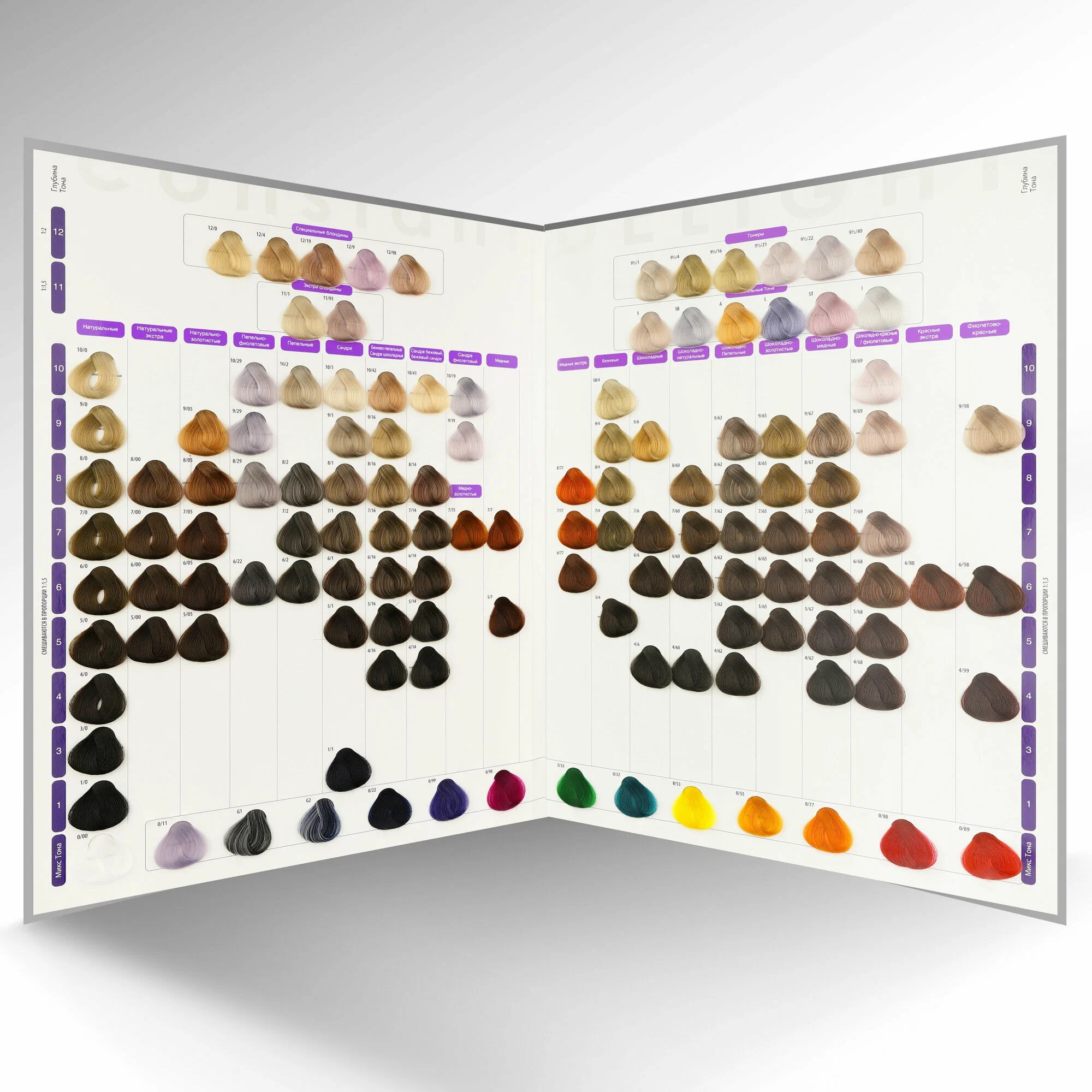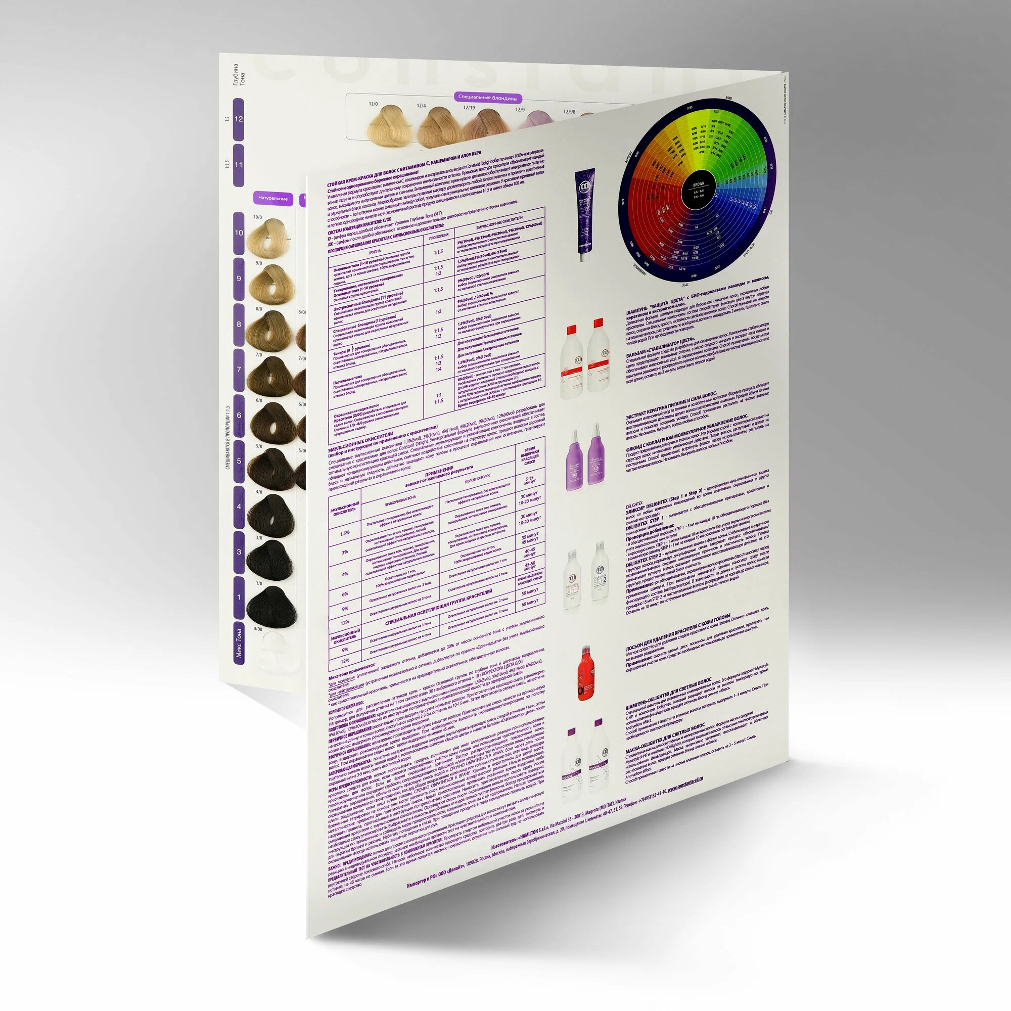 Палитра из 121 оттенка для модного стойкого окрашивания. Она предназначена для выбора необходимого цветового оттенка. В палитре представлен весь ассортимент крем-краски с витамином С: натуральные, пепельные, медные, бежевые, шоколадные, и другие цветовые направления.