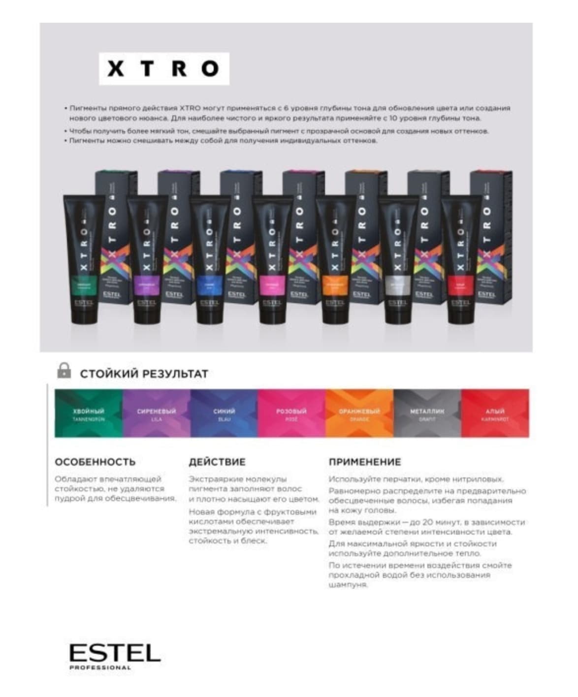 Пигменты не нужно смешивать с активатором или оксигентом, зато можно смешивать между собой и с прозрачной основой для получения индивидуальных оттенков. Формула без аммиака и перекиси водорода, с высоким содержанием полезных фруктовых кислот, обеспечивает окрашенным волосам эластичность и блеск.