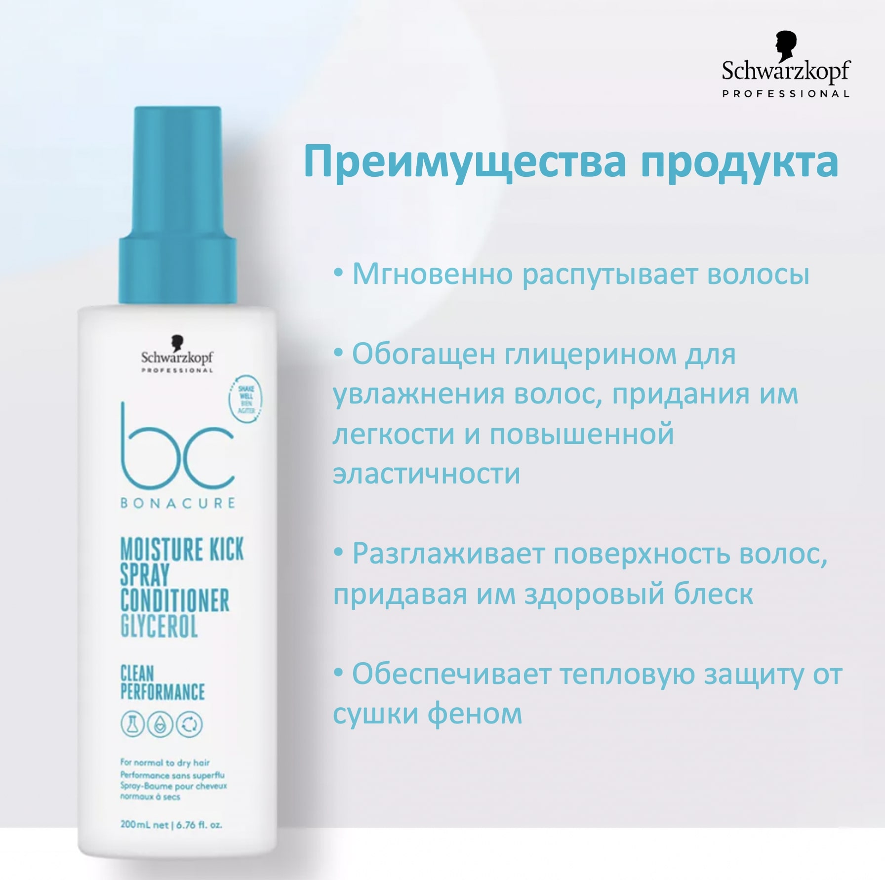 Линия Bonacure Hyaluronic Moisture Kick создана для нормальных и сухих, волнистых или кудрявых волос. Когда волосам недостает влаги, они теряют блеск, эластичность и упругость, становятся непослушными и ломкими. Bonacure Hyaluronic Moisture Kick восстанавливает гидробаланс и обеспечивает оптимальный уровень увлажнения даже самых сухих волос, тем самым улучшая их упругость, усиливая блеск и обеспечивая антистатический эффект. Мгновенно увлажняющий легкий спрей-кондиционер для нормальных и сухих, ломких или кудрявых волос. Обеспечивает увлажнение структуры волос, укрепляя её. Во время встряхивания флакона кремовая и водная фазы смешиваются, образуя легкую эмульсию, которая наносится на волосы тонким слоем, увлажняет и не перегружает их. Разглаживает поверхность волос, помогает легко распутать волосы и облегчает их расчесывание. Придает волосам здоровый блеск.